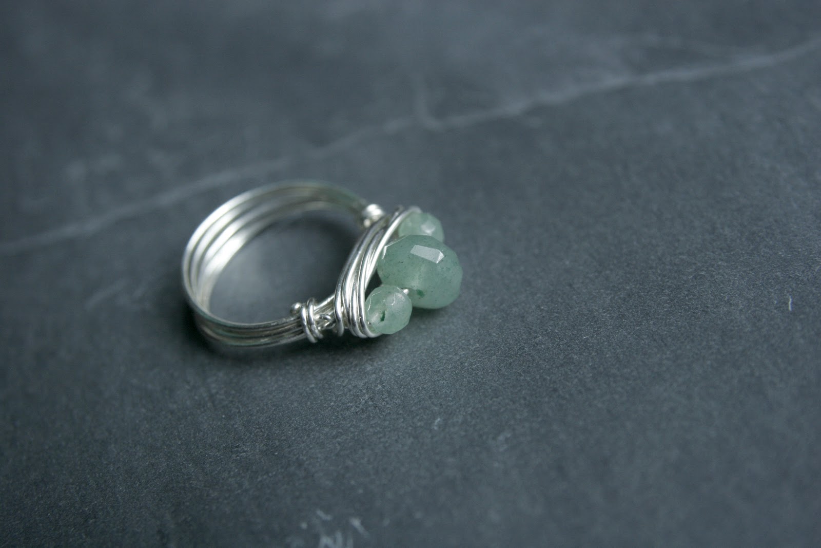 | Wire-wrapped ring in Sterling Silver with Aventurine |
